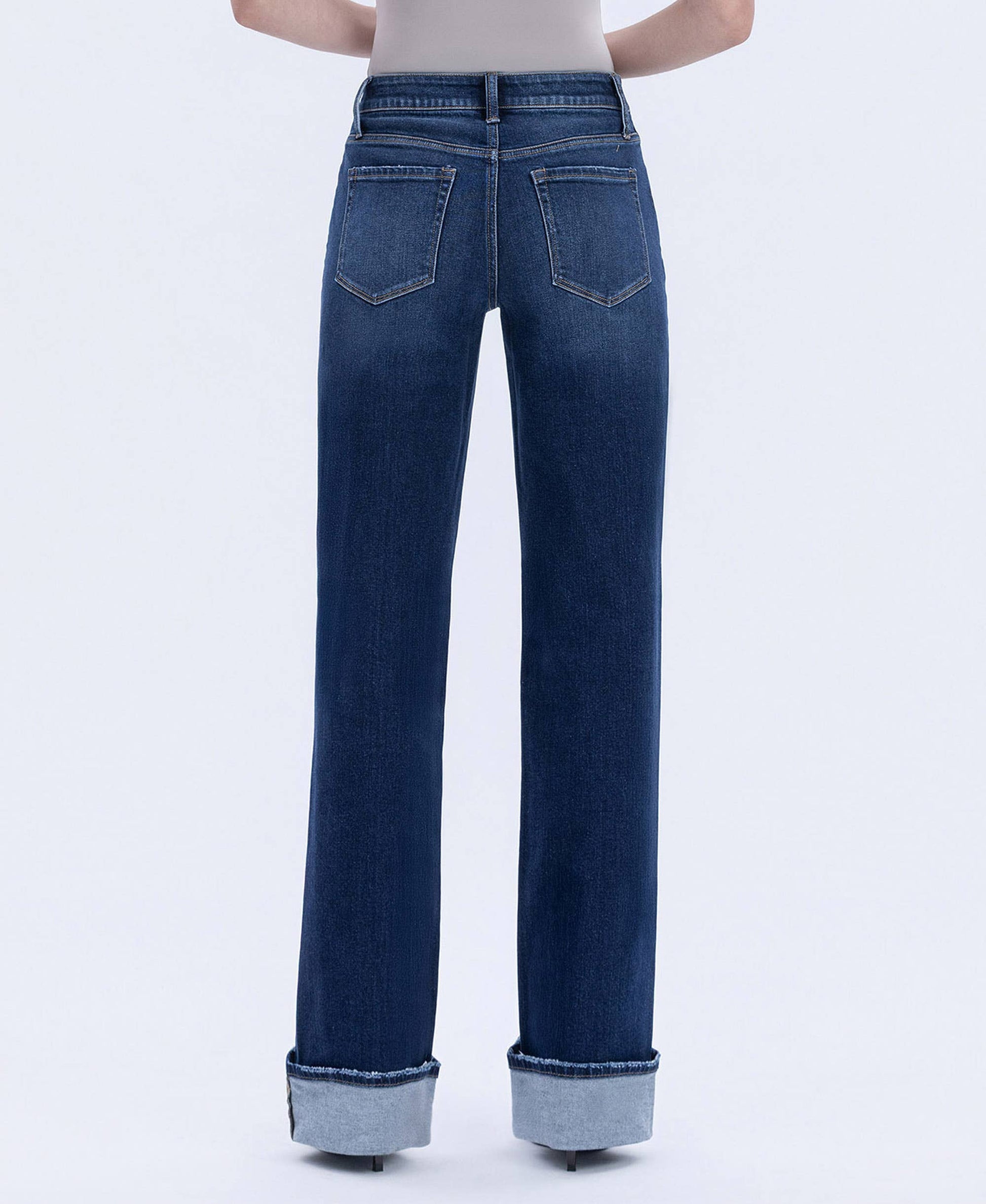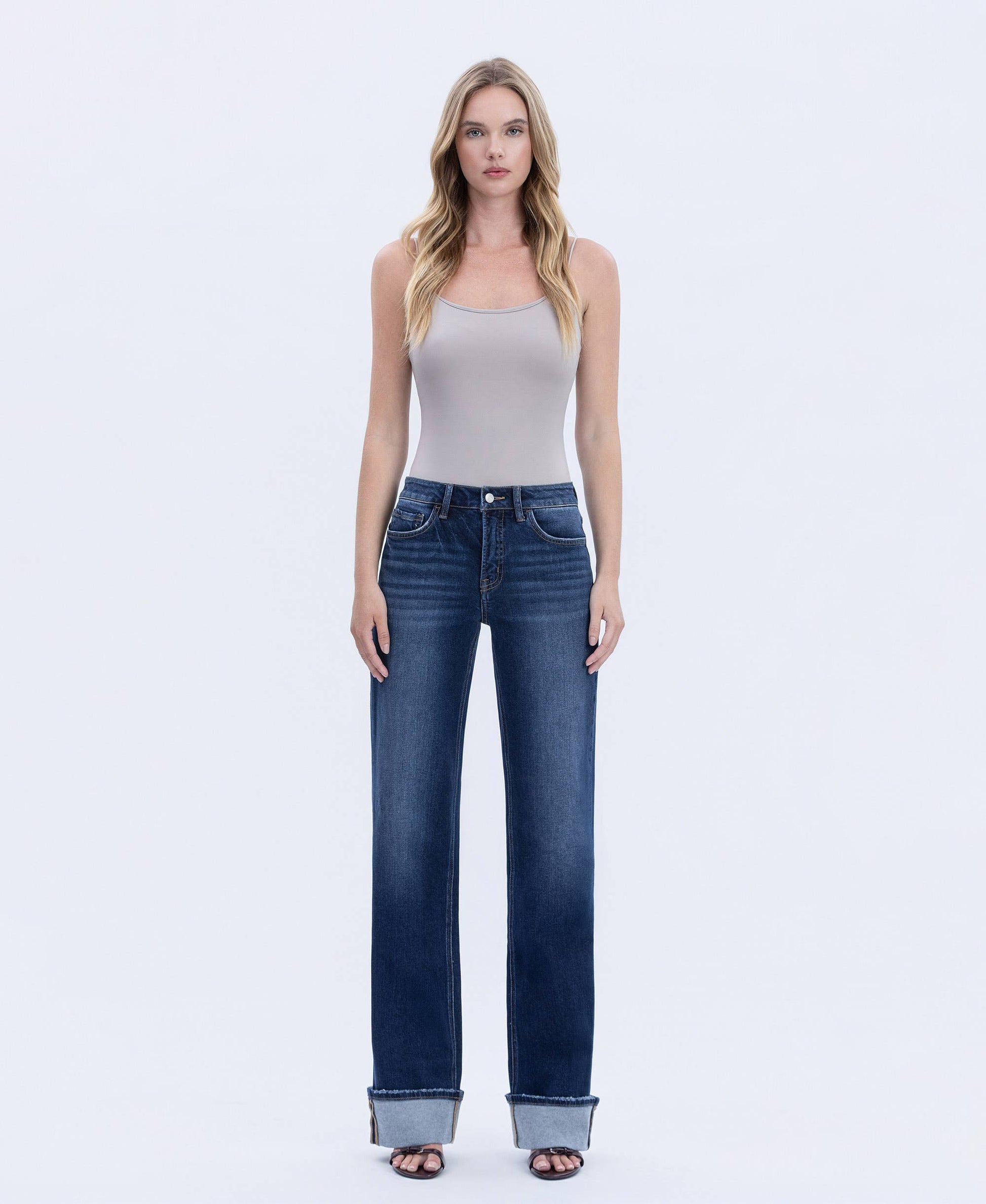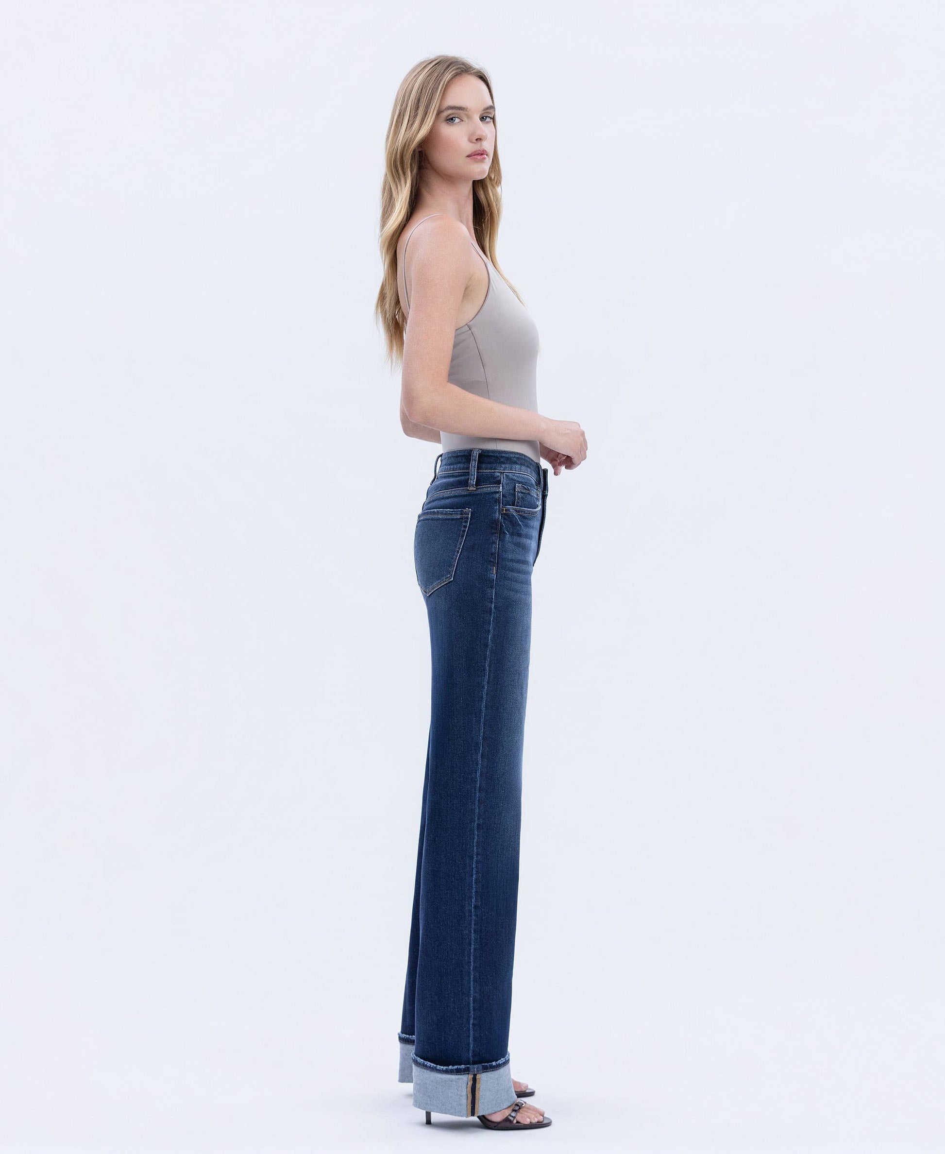HIGH RISE CUFFED WIDE LEG JEANS DARK WASH