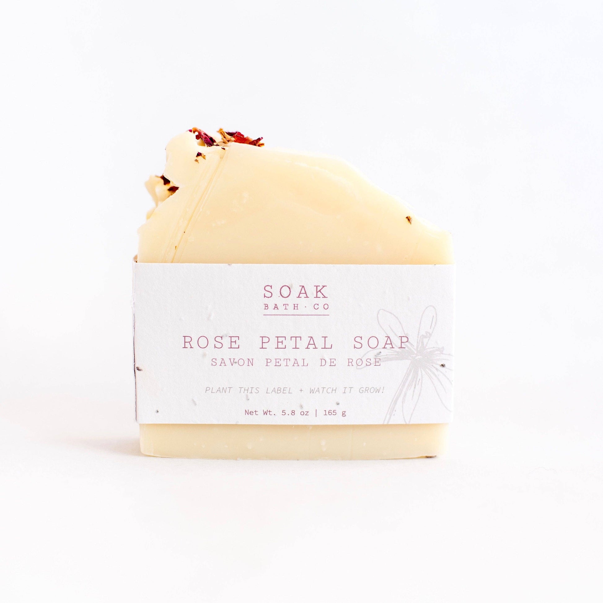 Roses are red, violets are blue.... we love this bar and so will YOU! The Rose Petal Soap is unlike any rose soap you've smelled in the past - it actually smells like a bouquet of roses and not like the cheap rose soaps you may have smelled in the past. This one's a classic and pairs perfectly with the Rose Petal Bath Bomb. The perfect gift for Valentine's Day, Mother's Day and every day! Recommended as a body bar and hand soap. This gorgeous bar is completely zero waste and sustainable. The label on each SOAK Bath Co bar is made of biodegradable, plantable seed paper so you can plant the label and it will grow into wildflowers! Proudly Made in Canada.